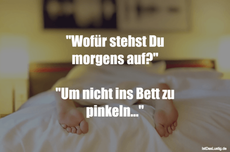 Auf Facebook teilen Vorige Folgende "Wofür stehst Du morgens auf?" "Um nicht ins... Autor des Artikels : istdaslustig Zum Original-Artikel "Wofür stehst Du morgens auf?" "Um nicht ins Bett zu pinkeln..." Hier geht es zum Artikel Mehr Lustiges auf www.istdaslustig.de Auf Facebook teilen Vorige Folgende Das könnte Ihnen gefallen Mehr