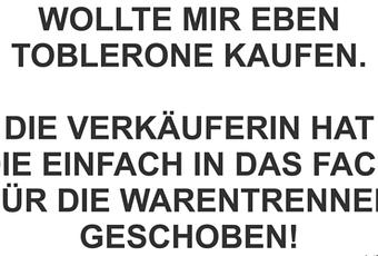 Auf Facebook teilen Vorige Folgende WOLLTE MIR EBEN TOBLERONE KAUFEN. DIE... Autor des Artikels : istdaslustig Zum Original-Artikel WOLLTE MIR EBEN TOBLERONE KAUFEN. DIE VERKÄUFERIN HAT DIE EINFACH IN DAS FACH FÜR DIE WARENTRENNER GESCHOBEN! Hier geht es zum Artikel Mehr Lustiges auf www.istdaslustig.de Auf Facebook teilen Vorige Folgende Das könnte Ihnen gefallen Mehr