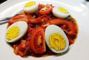 Neulich hatte ich Langizyti nach der Sahara. Früher fuhr ich da ja mehrmals pro Jahr hin; nach Tunesien, Algerien, Libyen, odr so. Nun geht das leider nicht mehr. Als kleiner Trost habe ich uns deshalb einen Salat Mechouia gemacht. Das ist sozusagen der tunesische Nationalsalat; etwa so wie der Wurstsalat in Deutschland. Wie der geht habe ich hier schon einmal beschreiben.