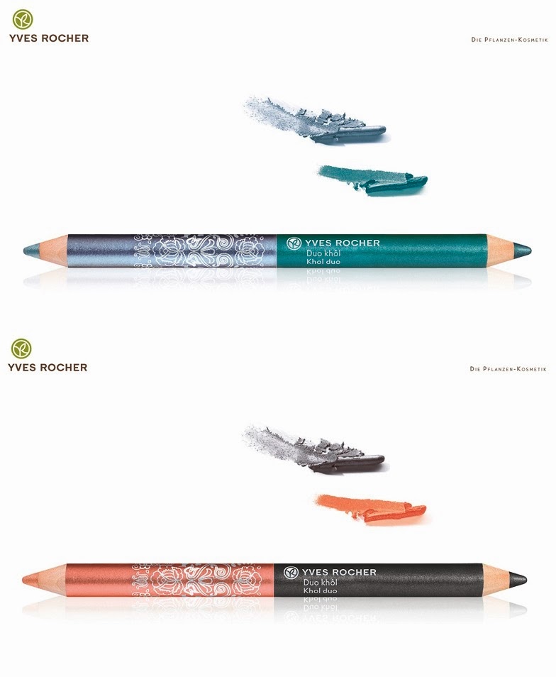 Mit den beiden neuen limitierten Khol-Stift-Duosvon Yves Rocher wird das Augen-Make-up zum Kinderspiel. Die praktischen Stifte mit jeweils zwei faszinierenden Farben zaubern jeden Tag einen neuen, einzigartigen Look. Das fein schimmernde Farbduo dunkel-blau und pfauenblau erzeugt einen tiefen, mysteriösen Blick. Und mit der Kontrastfarben-Kombination rauch-grau und mandarine wird der Blick umwerfend strahlend. Die Khol-Stift-Duosmit Baumwoll-Öl unterstreichen den Augen-Make-up-