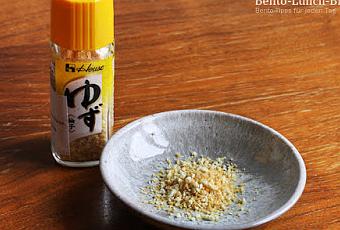 Man kann Yuzu überall da einsetzen, wo man auch Zitrone nehmen würde. Also Eiscreme, Eistee, Marmelade, Salatdressings, Ponzu (eine Art Zitronen-Sojasoße). Frische Yuzu ist in Deutschland fast nicht zu bekommen. Yuzusaft bekommt man ab und zu in kleinen Fläschchen zu horrenden Preisen. Dieses kleine Fläschchen mit Trocken-Yuzu-Pulver habe ich für knapp 5€ erstanden. Es ist ein schönes Extra, aber kein Muss.