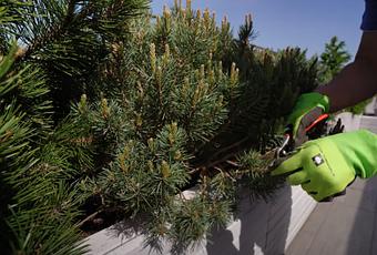 - Handschuhe tragen: Zwergkiefern harzen stark. Der Pflanzensaft ist klebrig und schwer von den Händen zu entfernen.