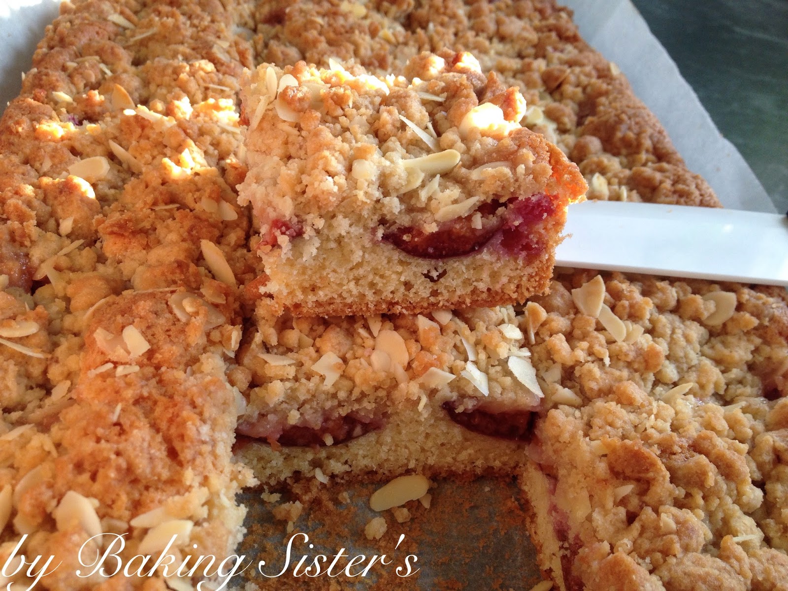 Fertig ist der Zwetschgenkuchen mit Mandelhonig Streusel